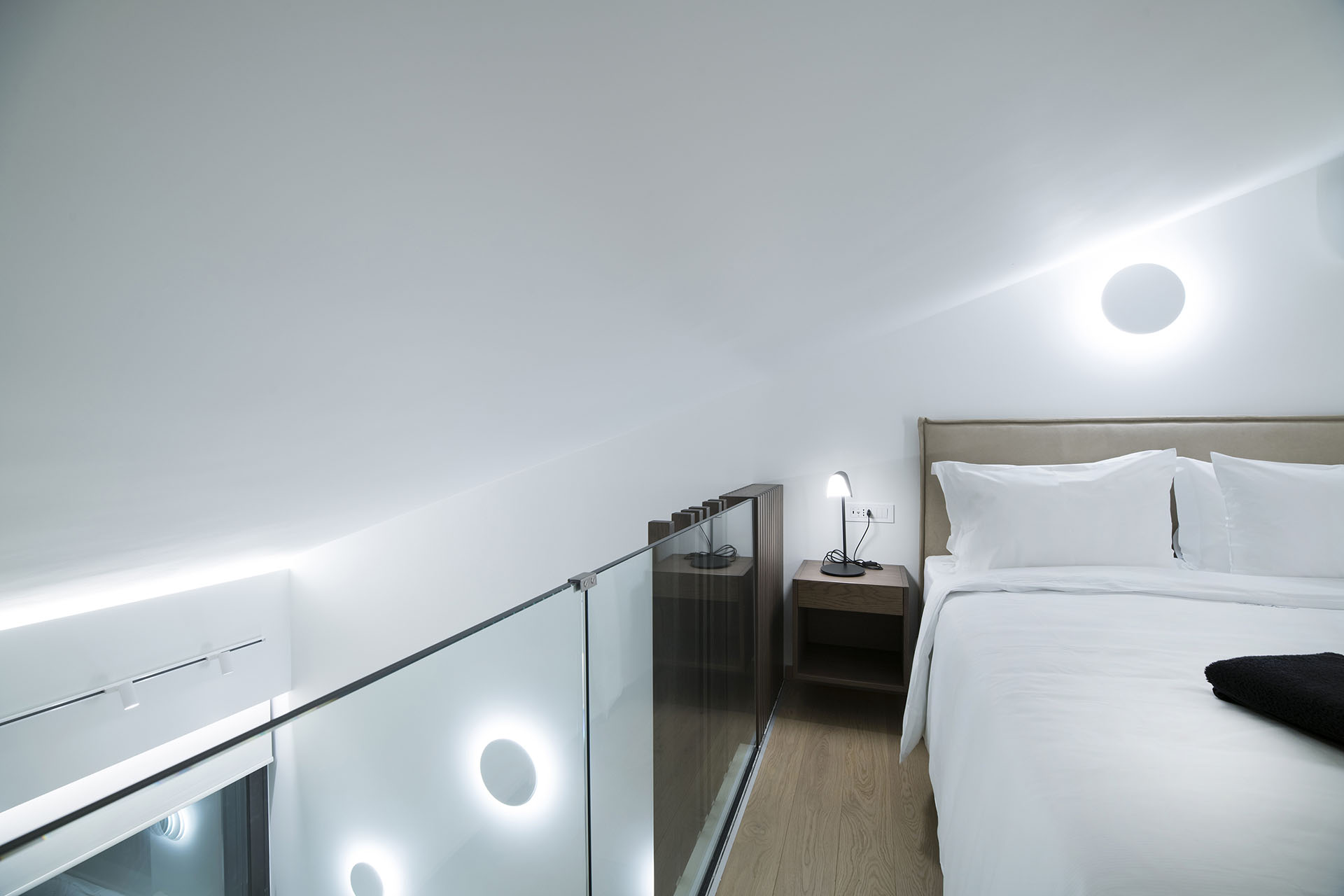Our Premium Deluxe Suite provides a spacious veranda with a hot tub for two people overlooking the exceptional sea view of the magnificent Port of Sitia. It offers a luxurious bathroom with a marbled shower unit. The bedroom takes place in an upstairs attic including a double bed with anatomic and ecological bounce mattress. It includes a satellite TV LED 43” and a telephone. The attic has immediate access to the roof where you can sunbath while enjoying the magnificent view of Sitia. There is also a spacious living room with an exceptional sea view for moments of serenity and wellness including one more television QLΕD 55”and two sofa beds that could easily accommodate more people, one adult and a child. The kitchen is fully-equipped with high-quality electronics such as hotplates, cooking oven, refrigerator, espresso machine, kettle, toaster, dish washer, washing machine. There is also a hairdryer and an iron with an ironing board, electronic and password protected safe box for your belongings, free high-speed internet WiFi access, built-in Bluetooth sound system, entrance to the room via card-swiping system for energy saving. There is available a free laptop for you to use. The modern layout of the suite in accordance to its finest quality equipment creates an unprecedented experience of luxury and comfort.