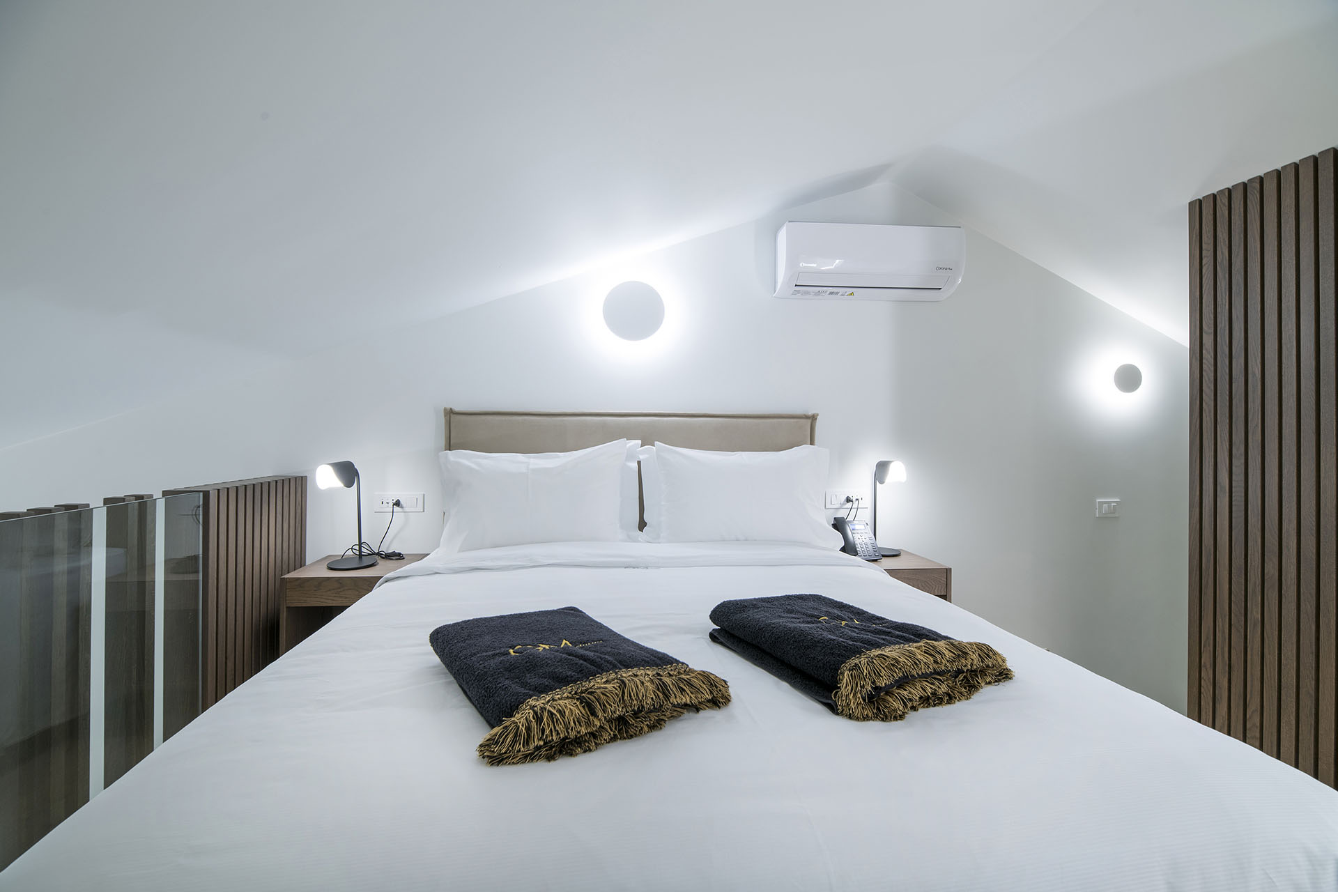 Ce type de suite dispose d’une terrasse extérieure, avec une vue spectaculaire sur le port et la charmante baie de Sitia, dans laquelle se trouve un spa chauffé pour deux personnes. Elle dispose d’une salle de bain luxueuse et confortable, avec douche et orthomarbrerie. La chambre se trouve dans une mezzanine surélevée, où se trouve un lit double avec un matelas gonflable anatomique et écologique. Il dispose d’une télévision par satellite à écran LED de 43 pouces et d’un téléphone. Le grenier a un accès direct au jardin sur le toit, où les visiteurs qui prennent le soleil peuvent profiter de la vue magnifique sur la ville de Sitia. Dans le salon spacieux, où la vue imprenable sur la mer donne un sentiment de liberté sans précédent, il y a deux canapés-lits, où deux autres personnes, adultes ou enfants, peuvent être logées. Là, il y a un autre téléviseur QLED de 55 pouces. La cuisine est entièrement équipée avec des appareils électriques de haute qualité tels que plaques de cuisson, four, réfrigérateur, machine à expresso, bouilloire, grille-pain, grille-pain, lave-vaisselle et lave-linge. De plus, il y a un sèche-cheveux, un fer à repasser électrique avec planche à repasser, un coffre-fort électronique avec une combinaison pour ranger les objets de valeur. Un ordinateur portable est mis gratuitement à votre disposition ainsi que le wifi avec internet haut débit par fibre, un système de son bluetooth intégré et un système de carte d’entrée dans la chambre pour économiser de l’énergie.