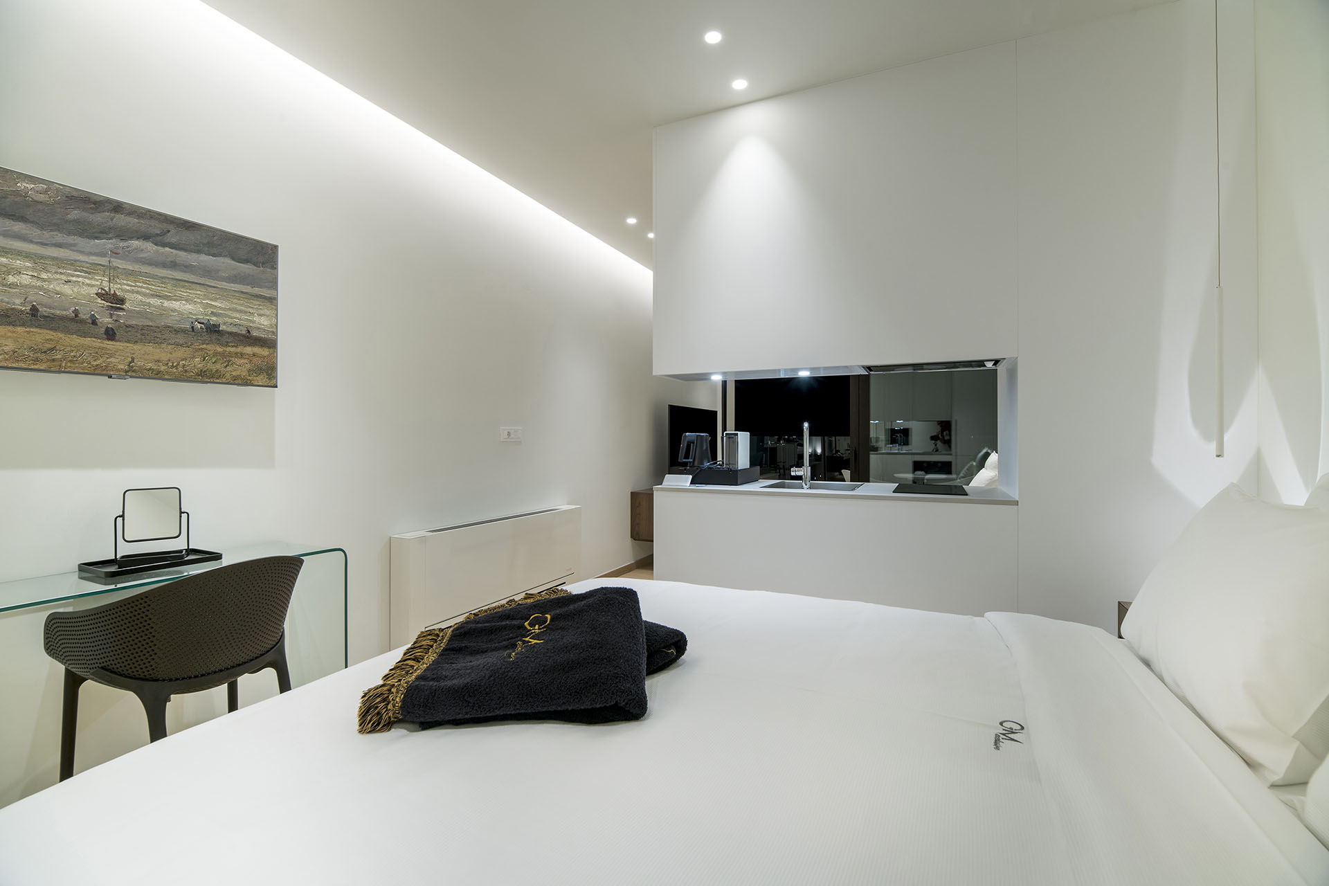 Cette suite se compose d’un espace intérieur confortable complété par une terrasse-jardin privée donnant sur le port et la baie enchanteresse de Sitia dans laquelle se trouve un spa chauffé pour deux personnes pour des moments de bien-être et de détente à chaque instant de le jour. Elle dispose d’une salle de bain luxueuse, avec douche et orthomarbre et d’un lit double avec un matelas gonflable anatomique et écologique. Le salon est séparé de la chambre avec la cuisine. Dans le salon, il y a un canapé-lit spacieux et confortable où une personne supplémentaire peut être logée. La cuisine est entièrement équipée avec des appareils électriques de haute qualité tels que plaques de cuisson, four, réfrigérateur, machine à expresso, bouilloire, grille-pain, grille-pain. De plus, il y a un sèche-cheveux, un fer à repasser électrique avec planche à repasser, un coffre-fort électronique avec une combinaison pour stocker des objets de valeur, ainsi que le wifi avec Internet haut débit par fibre, un système de son Bluetooth intégré et un système de carte d’entrée pour économiser de l’énergie.