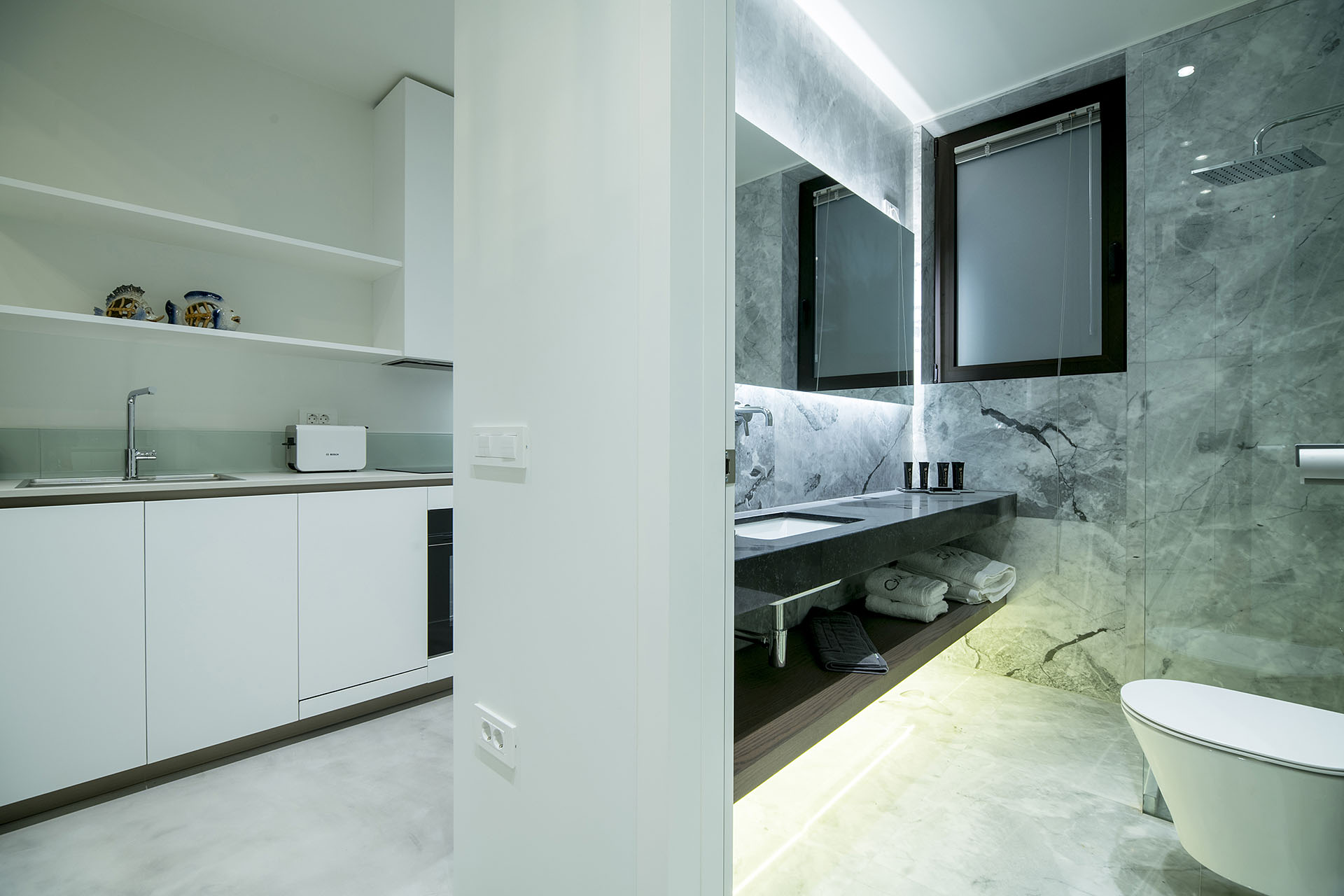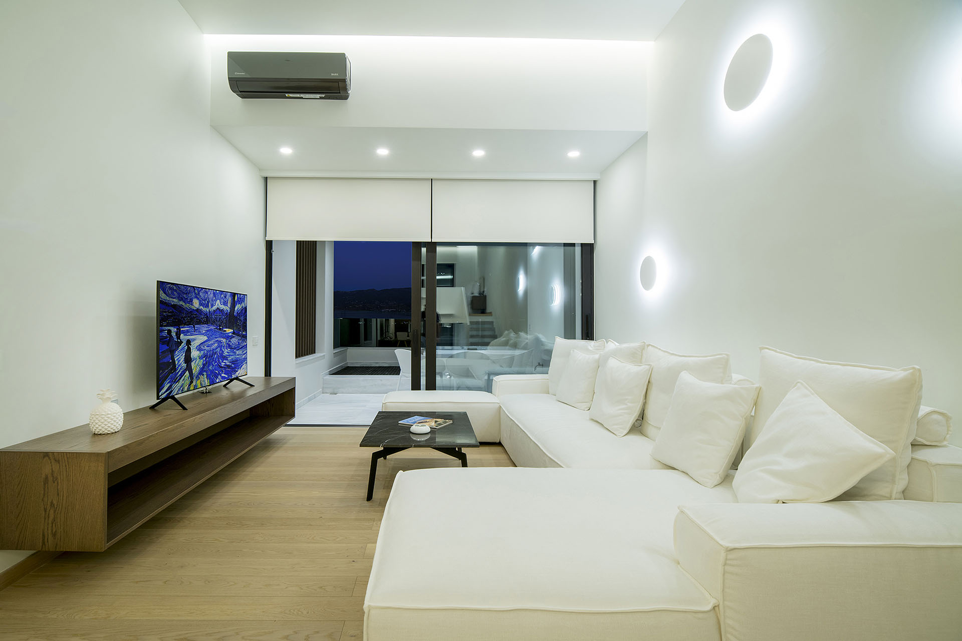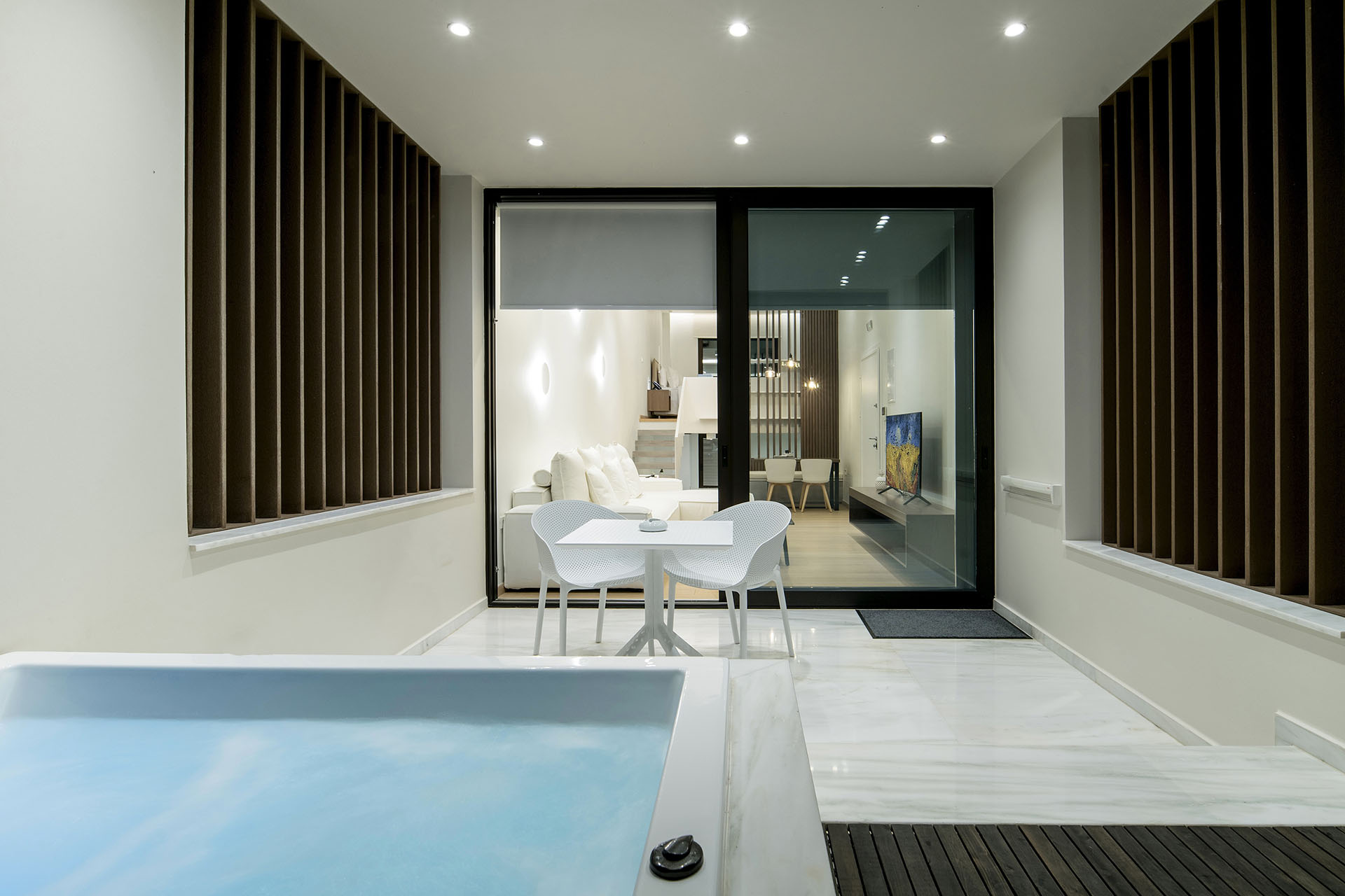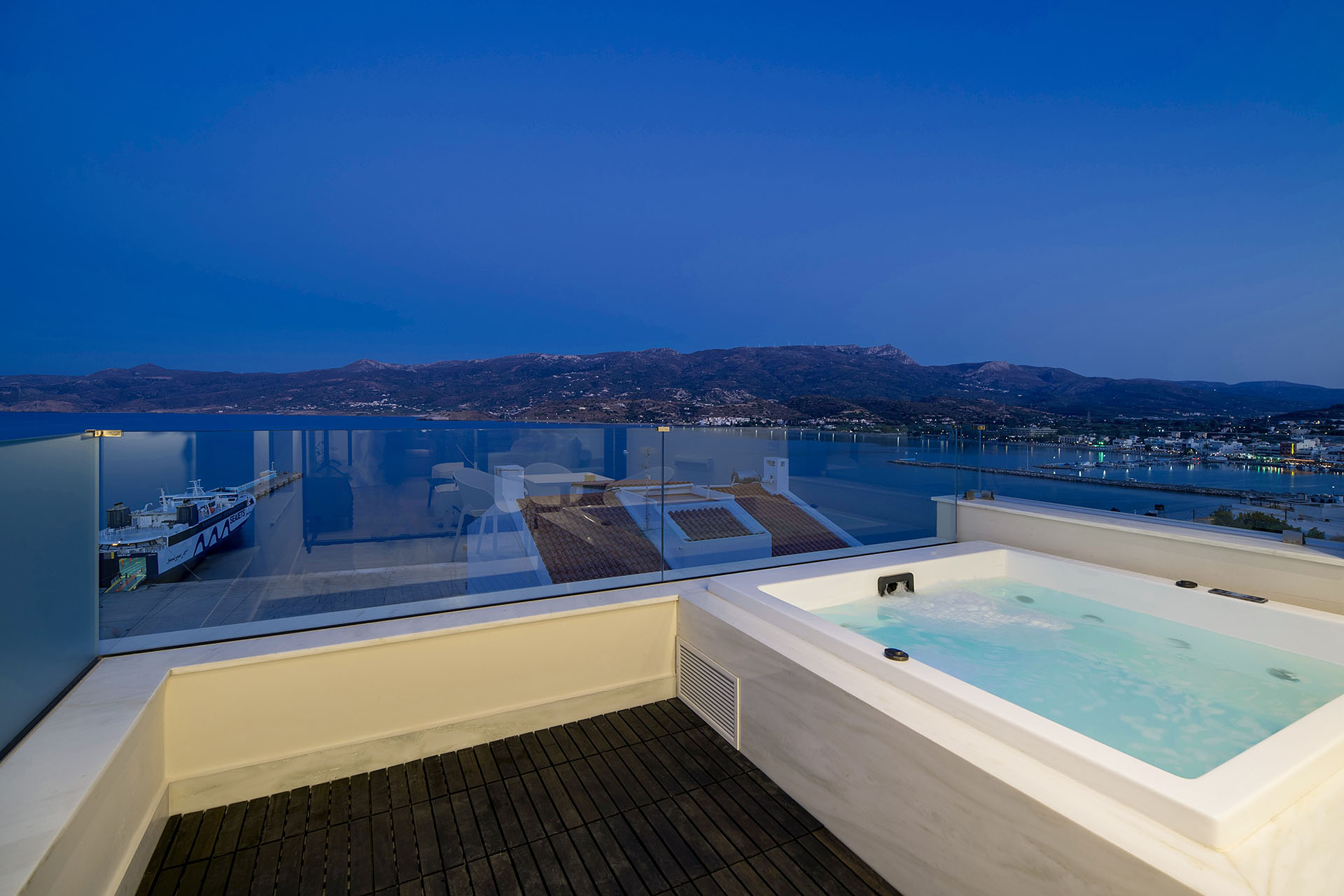 Ευρύχωρη σουίτα με απαράμιλλη θεά και σύγχρονες ανέσεις. Διαθέτει ιδιωτική βεράντα με θεά το λιμάνι και το μαγευτικό κόλπο της Σητείας στην οποία υπάρχει θερμαινόμενο spa δύο ατόμων. Διαθέτει πολυτελές μπάνιο με ντουζιέρα και ορθομαρμάρωση. Το υπνοδωμάτιο είναι σε υπερυψωμένο πατάρι, έχει πανοραμική θέα στη θάλασσα, διπλό κρεβάτι με ανατομικό οικολογικό στρώμα bounce με δορυφορική τηλεόραση QLED 50” και τηλέφωνο. Στο ευρύχωρο καθιστικό με θέα επίσης στην θάλασσα υπάρχουν δύο καναπέδες- κρεβάτια όπου μπορούν να φιλοξενηθούν ένα η και δύο ακόμα άτομα, ενήλικες ή παιδιά αλλά και μία ακόμα δορυφορική τηλεόραση QLΕD 55″. Η κουζίνα είναι πλήρως εξοπλισμένη με εστίες, φούρνο μαγειρέματος, ψυγείο, μηχανή για καφέ εσπρέσο, βραστήρα νερού, φρυγανιέρα, τοστιέρα, πλυντήριο πιάτων και πλυντήριο ρούχων. Επιπλέον υπάρχει σεσουάρ στεγνώματος μαλλιών, ηλεκτρικό σίδερο με σιδερώστρα, και ηλεκτρονικό χρηματοκιβώτιο με συνδυασμό για φύλαξη πολύτιμων αντικειμένων. Ακόμα παρέχεται δωρεάν wifi με internet υψηλών ταχυτήτων, εντοιχισμένο ηχοσύστημα bluetooth και σύστημα κάρτας για είσοδο στο δωμάτιο για εξοικονόμηση ενέργειας. Η μοντέρνα διαρρύθμιση σε συνδυασμό με την άριστη ποιότητα δημιουργεί στους επισκέπτες μας μια πρωτόγνωρη εμπειρία πολυτελούς διαμονής.